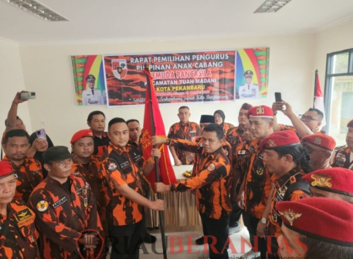 SCN | PEKANBARU - Ditetapkannya Febri Utama Melanjutkan Nahkoda Pimpinan Anak Cabang (PAC) Pemuda Pancasila Tuah Madani setelah menggelar Rapat Pemilihan Pengurus (RPP) Pemuda Pancasila Periode 2025 – 2028, bertempat di Aula Kantor Kecamatan Tuah Madani, Ahad (12/10/2025).