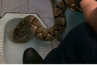 Cepat Tanggap, Petugas Damkar Pekanbaru Evakuasi Ular Piton Dari Closet