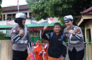 HUT ke-80 RI, Ditlantas Polda Riau Ajak Anak SD Cinta Tanah Air dan Lingkungan