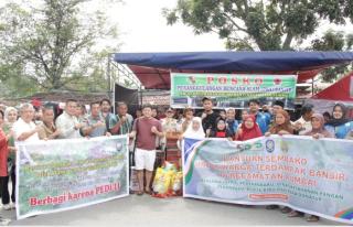 Satpol PP, DKP Pekanbaru dan BEM SI Serahkan Bantuan Sembako Kepada Korban Banjir di Rumbai