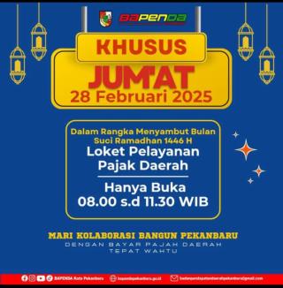 Jelang Bulan Suci Ramadhan, Bapenda Pekanbaru Tetap Buka Layanan Pajak