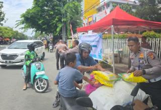 Ringankan Warga, Ditlantas Polda Riau Salurkan 2 Ton Beras melalui Gerakan Pangan Murah