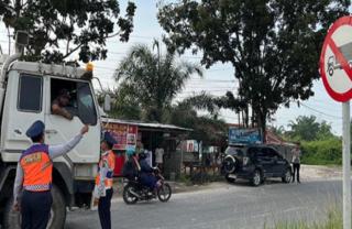 Dirlantas Polda Riau Imbau Pengemudi Angkutan Barang Patuhi Pembatasan Operasional Selama Pacu Jalur