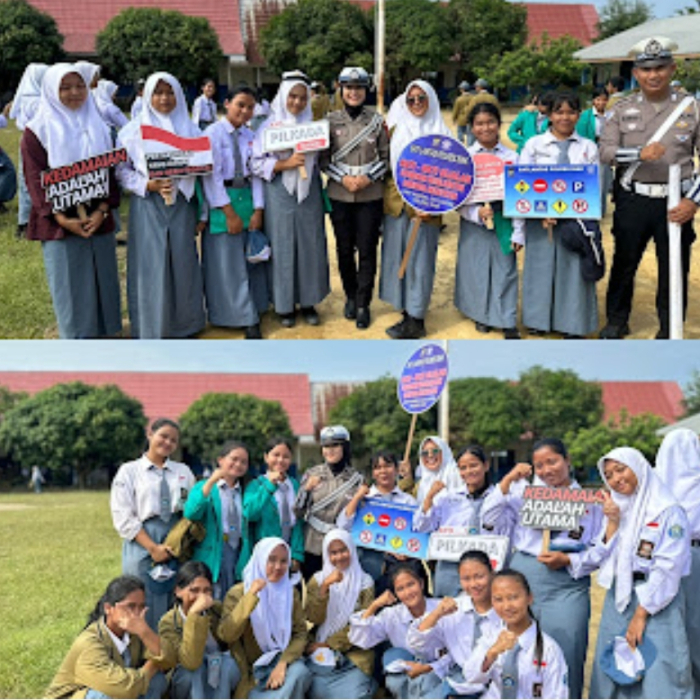 Satlantas Polres Siak Edukasi Siswa SMK 1 Kandis Lewat Program Police Goes to School dan Sampaikan Pesan Pilkada Damai