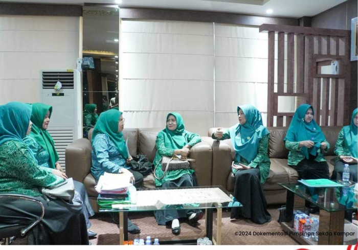 SCN Bangkinang - Penjabat Ketua TP-PKK Kabupaten Kampar, Ricana Djayanti Hambali menyambut kedatangan tim monitoring dan evaluasi TP-PKK Provinsi Riau yang di hadiri oleh hj. Herlina .SPI