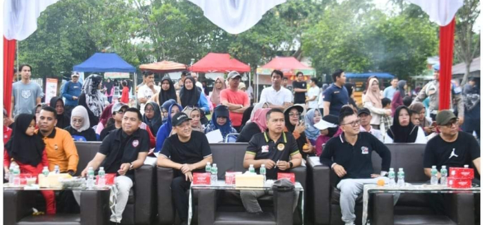 SCN | Bangkinang Kota,- Penjabat (Pj) Bupati Kampar Hambali SE.M.Ba.MH Menghadiri Sosialisasi Pemilihan Secara Tatap Muka sekaligus Care Free Day (senam) Lapangan Pelajar Bangkinang Kota, Minggu (15/9).