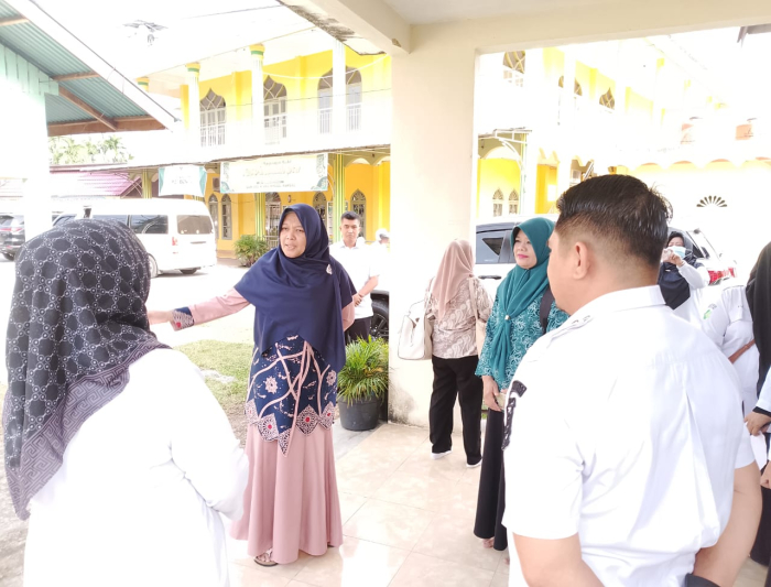 SCN | Kampar - Pj Ketua TPP PKK Kabupaten Kampar, Ricana Djayanti Hambali yang juga merupakan Pembina Posyandu Kabupaten Kampar, bersama Camat Bangkinang Kota Minda, Kepala Puskesmas Bangkinang Kota dr. Yudi dan Ketua Pokja IV dr. Elvi kunjungi Posyandu Melati Kelurahan Langgini Kecamatan Bangkinang Kota pada Kamis (2/10).