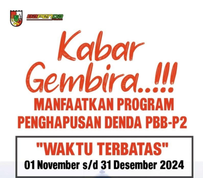 “Program penghapusan denda PBB ini berlaku dari tanggal 1 November sampai 31 Desember 2024,” kata Kepala Badan Pendapatan Daerah (Bapenda) Kota Pekanbaru Dr Alek Kurniawan M.Si, Selasa (5/11/2024).
