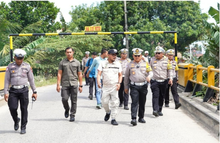 "Hari ini Sabtu, kami bersama Pihak Ditlantas Polda Riau, kebetulan bersama bapak Dirlantas melaksanakan peninjauan kondisi jambatan saat," katanya.