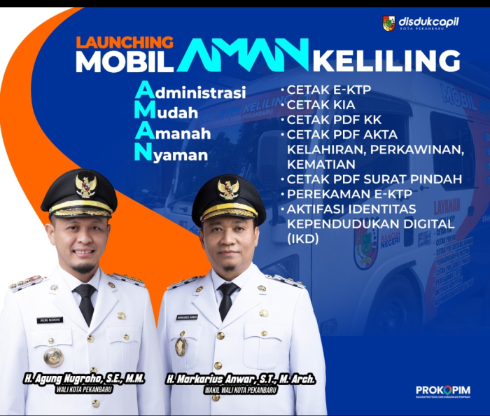 Mobil Adminduk keliling yang akan dilaunching Wali Kota Pekanbaru ini diberi nama Mobil AMAN, yakni Administrasi Kependudukan sampai Tuntas, Aman dan Nyaman.