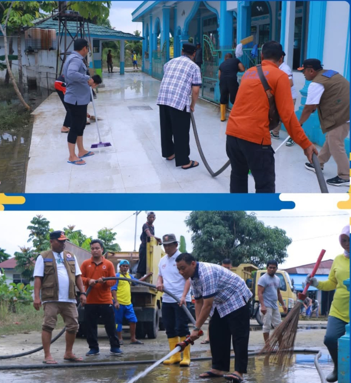 "Maka kita mulai membersihkan lokasi yang terdampak banjir," terangnya di sela kegiatan.