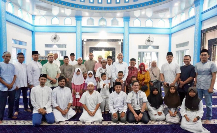 Tak kurang dari 200 paket bantuan sembako dan uang santunan untuk 30 anak yatim piatu diserahkan orang nomor satu Dumai saat menghadiri acara silaturahmi dan buka puasa bersama dengan jajaran PT Pelabuhan Dumai Berseri, bertempat di Masjid Jamiatul Khusnul Khotimah, Mekar Sari-Bukit Timah, Jumat (14/3/2025).