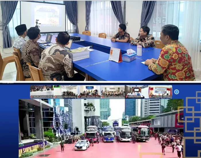 SCN | Pekanbaru – Lembaga Pemasyarakatan (Lapas) Narkotika Kelas IIB Rumbai mengikuti Apel Pelepasan Mudik Bersama Hari Raya Idul Fitri 1446 H/2025 M yang diselenggarakan oleh Kementerian Koordinator Bidang Hukum, Hak Asasi Manusia, Imigrasi, dan Pemasyarakatan secara virtual. Kegiatan ini berlangsung di ruang rapat dan diikuti oleh Kepala Lapas Narkotika Kelas IIB Rumbai beserta Jajaran, Jum’at (21/03/2025).