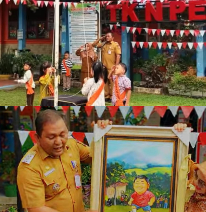 SCN |PEKANBARU - Camat Marpoyan Damai Fauzan S. STP, M. Si menjadi Pembina Upacara di TK Negeri Pembina 3 Jalan Arwana, Tengkerang Barat, Kecamantan Marpoyan Damai, Kota Pekanbaru, Minggu (17/08/2025).