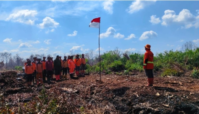 “Kami hanya bisa lakukan hormat bendera di lokasi Karhutla, tidak bisa melaksanakan apel seperti biasa menaikkan bendera dan menyanyikan lagu Indonesia Raya karena keterbatasan,” ujar Abdul Razak.