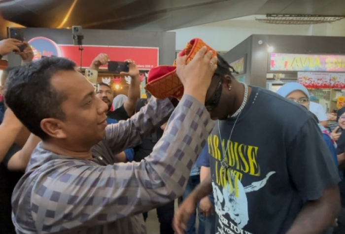 "Dengan dipakaikan tanjak, itu artinya kita menerima tamu dengan penuh rasa hormat dan menghargai kedatangannya," jelas Roni.