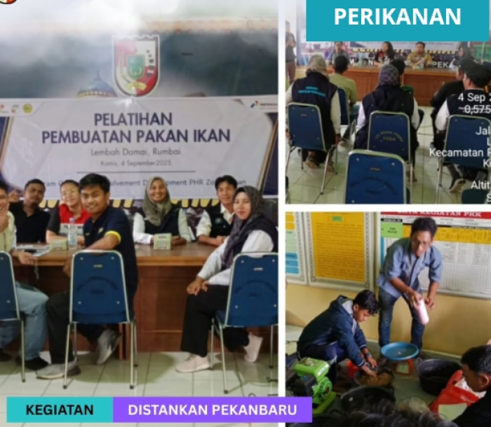 SCN | PEKANBARU - Penyuluh Perikanan Kota Pekanbaru mendampingi Pokdakan Ridho Ilahi dalam pelatihan pembuatan pakan ikan yang diinisiasi oleh Pertamina Hulu Rokan (PHR) Zona Rokan melalui program Community Involvement Development (CID).