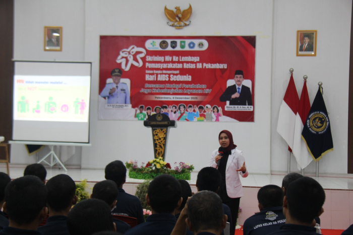 Plt Gubernur Riau, yang diwakili oleh Plt Kepala Dinas Kesehatan Provinsi Riau, Heri Permana, menyampaikan bahwa momentum Hari AIDS Sedunia menjadi pengingat pentingnya upaya bersama dalam mengurangi stigma, meningkatkan edukasi, dan memastikan setiap warga—termasuk warga binaan—memperoleh layanan kesehatan yang setara. “Deteksi dini melalui skrining sangat penting agar penanganan dapat dilakukan lebih cepat dan tepat. Kegiatan ini sekaligus menjadi langkah nyata memperkuat upaya pencegahan HIV di wilayah Riau,” ujarnya.