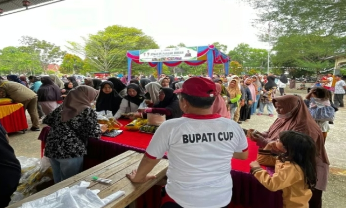 SCN | Pangkalan Kerinci – Tingginya harga bahan kebutuhan pokok di pasar-pasar Kabupaten Pelalawan mendorong Pemerintah Kabupaten Pelalawan kembali menggelar Gerakan Pangan Murah sebagai upaya menjaga stabilitas pasokan dan harga pangan menjelang perayaan Natal dan Tahun Baru (Nataru). Kegiatan ini berlangsung di Halaman Kantor Camat Pangkalan Kerinci, Kamis (11/12/2025).