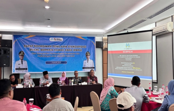 SCN | PEKANBARU – Pemerintah Kota (Pemko) Pekanbaru menggelar rapat koordinasi (rakor) terkait standarisasi Ruang Bermain Ramah Anak (RBRA) di Hotel Grand Central, Jalan Jenderal Sudirman, Jumat (12/12/2025).