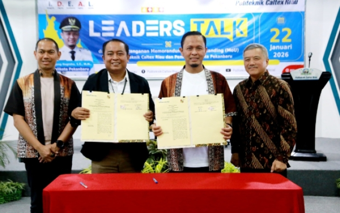 SCN | PEKANBARU - Wali Kota (Wako) Pekanbaru, H Agung Nugroho SE MM menjadi narasumber pada kegiatan Leaders Talk yang berlangsung di auditorium kampus Politeknik Caltex Riau (PCR) Rumbai, Kamis (22/1/2025).