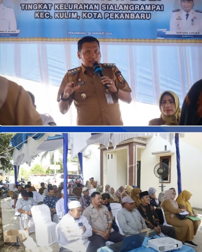SCN | PEKANBARU – Camat Kulim, Fajri Adha, S.STP., M.Si, menghadiri kegiatan Musyawarah Perencanaan Pembangunan (Musrenbang) Kelurahan Sialangrampai yang digelar pada Senin (26/01/2026). Kegiatan ini menjadi forum strategis dalam menyerap aspirasi masyarakat guna menyusun rencana pembangunan yang tepat sasaran.